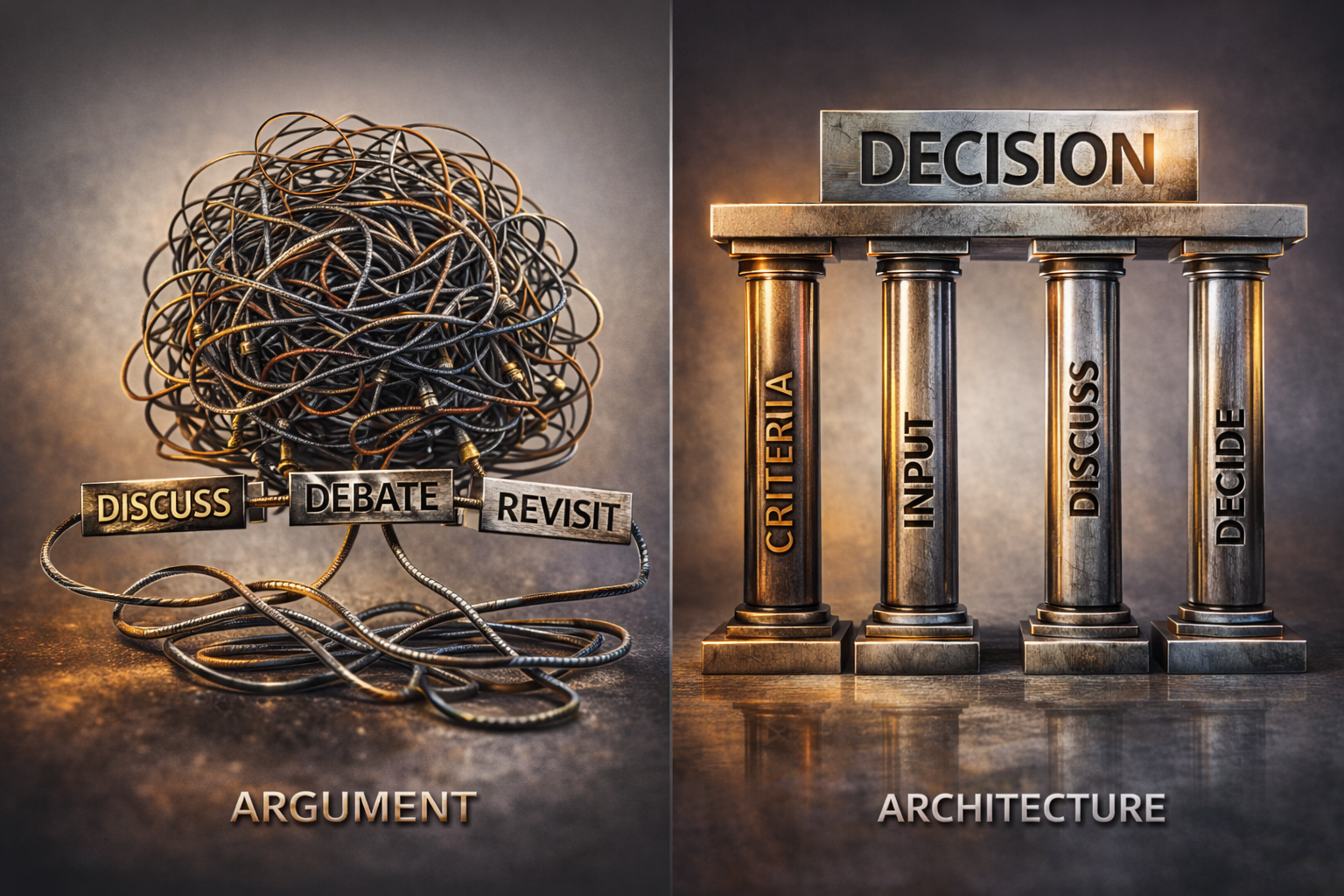 Where in your team are decisions clear in conversation but ambiguous in structure? What would change if you built architecture instead of relying on argument?